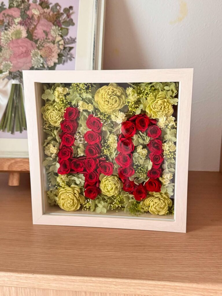 お花で40と描いた周年御祝の特別プリザーブドフラワーです。