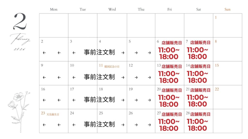 金曜・土曜 店頭販売日11:00~18:00